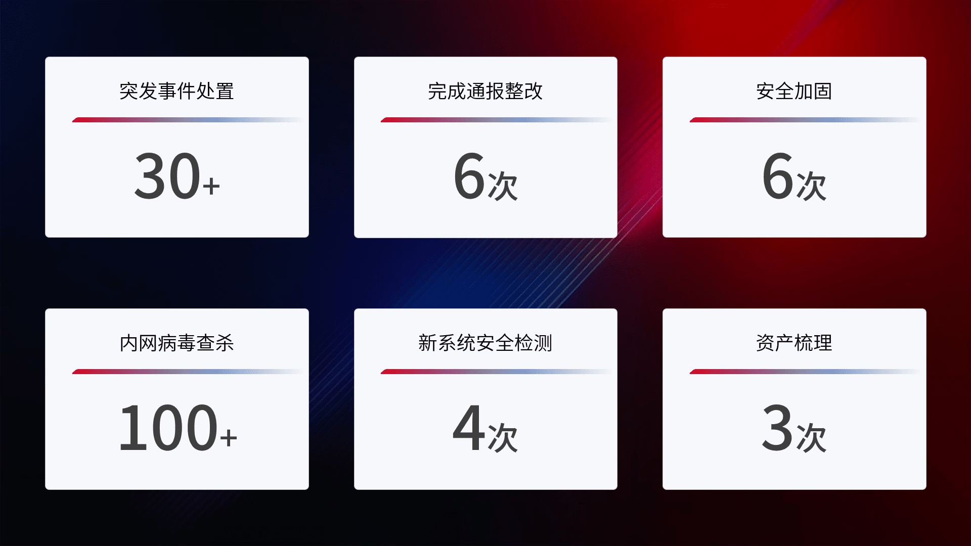 网络安全加固与风险管理:通过技术加固手段,,,如加强区域隔离,,缩减攻击内网横向移动的范围;优化现有网络安全管理制度,,降低网络威胁暴露面,,,,减少被黑客攻击的可能性。。。